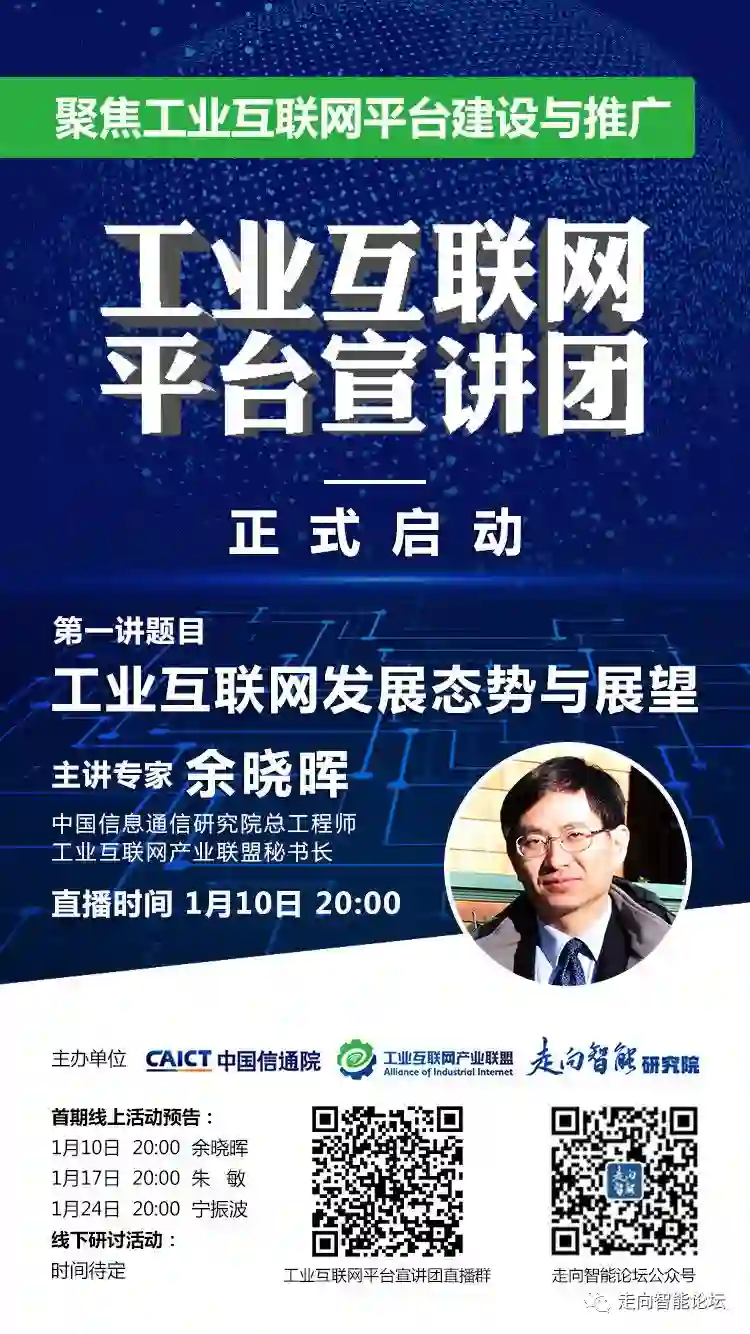 工业互联网平台宣讲团网络宣贯活动,在工信部信软司大力支持下,由中国信息通信研究院、工业互联网产业联盟、走向智能研究院主办,整合政产学研各方力量集中开展白皮书网络宣贯活动。