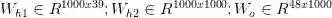 设计网络结构(architecture):确定层数、每一隐藏层的节点数和激活函数,以及输出层的激活函数和损失函数。上图用的是两层隐藏层(最后一层是输出层)。隐藏层所用激活函数 a() 是 ReLu,输出层的激活函数是线性 linear(也可看成是没有激活函数)。隐藏层都是 1000 节点。损失函数 L() 是用于比较距离 MSE:mean((output - target)^2)。MSE 越小表示预测效果越好。训练过程就是不断减小 MSE 的过程。到此所有数据的维度都已确定: