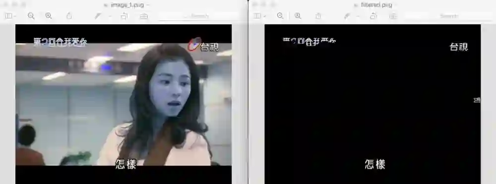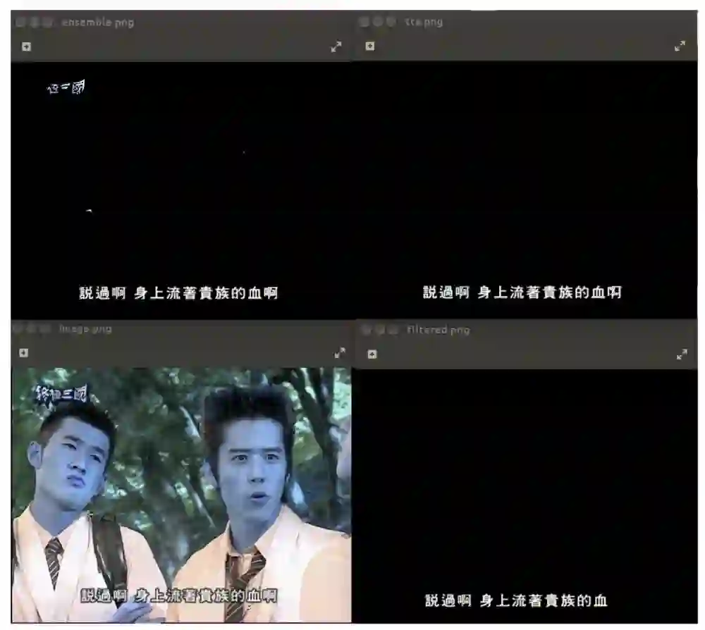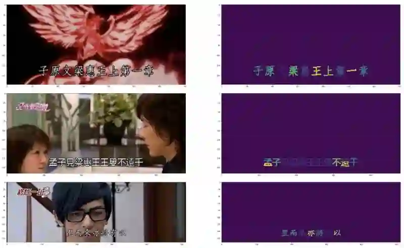 上方左边显示的是输入图片,而右边显示输出结果。你可以看到字幕已经被清楚的识别出来了。
