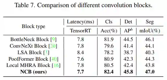 此外,一个高效的基于注意力的 token 混合器同样重要。该研究设计了一种多头卷积注意力(MHCA)作为部署卷积操作的高效 token 混合器,并在 MetaFormer [40] 的范式中使用 MHCA 和 MLP 层构建 NCB。