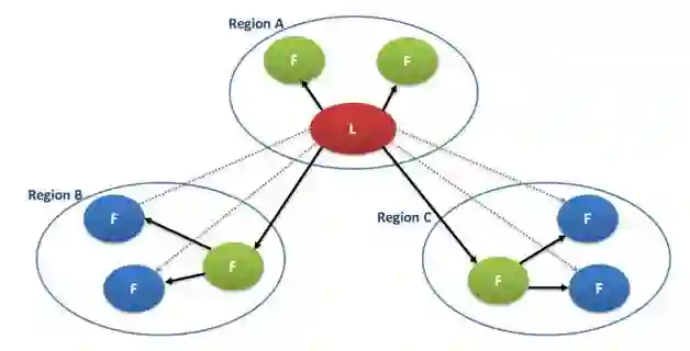 基于unique proposer的分布式系统的存在的一个瓶颈点就是主节点是唯一的内容输出源,当集群存在大量节点的时候,主节点的大量网络收发工作会导致主节点的负载过大,引发CPU和带宽的瓶颈;在全国/全球部署的时候,所有节点和主节点之间的直接通信会造成跨region之间的长传/国际链路的带宽占用过大。