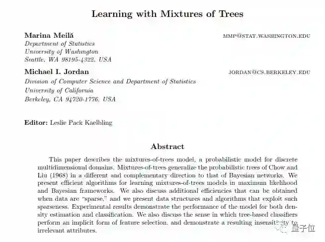 其中一篇论文,是在2000年发表的。作者之一就是吴恩达的导师,迈克尔·乔丹。