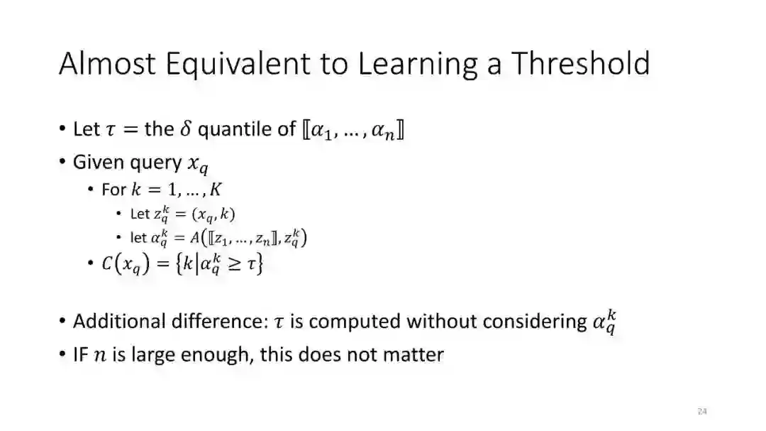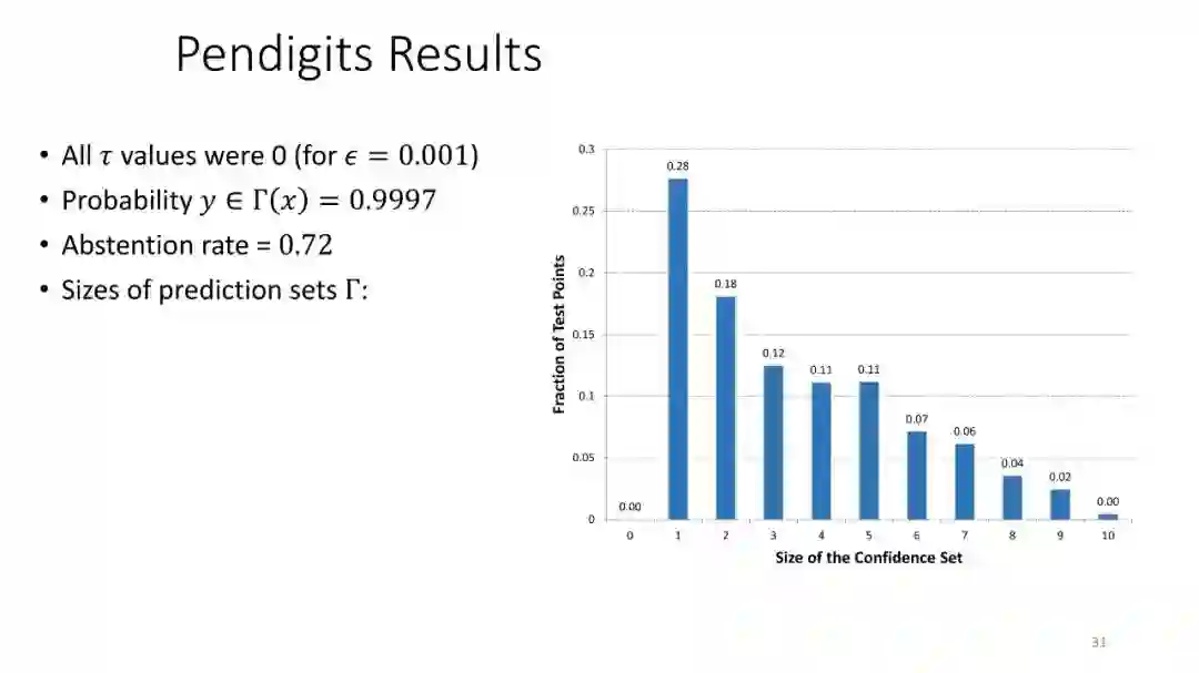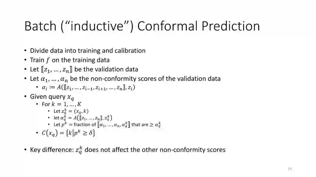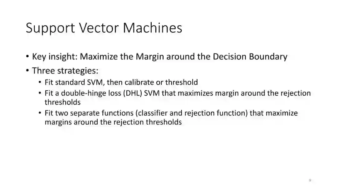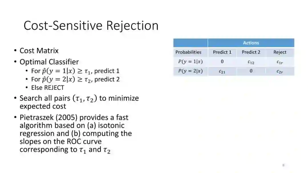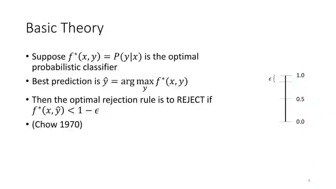 第2讲:带有拒绝选项的分类。为了正确地做出拒绝决策,我们不需要获得经过校准的概率。这节课讨论了设置拒绝阈值的方法,该阈值提供了准确性保证。这包括标准的阈值法和保角预测法。