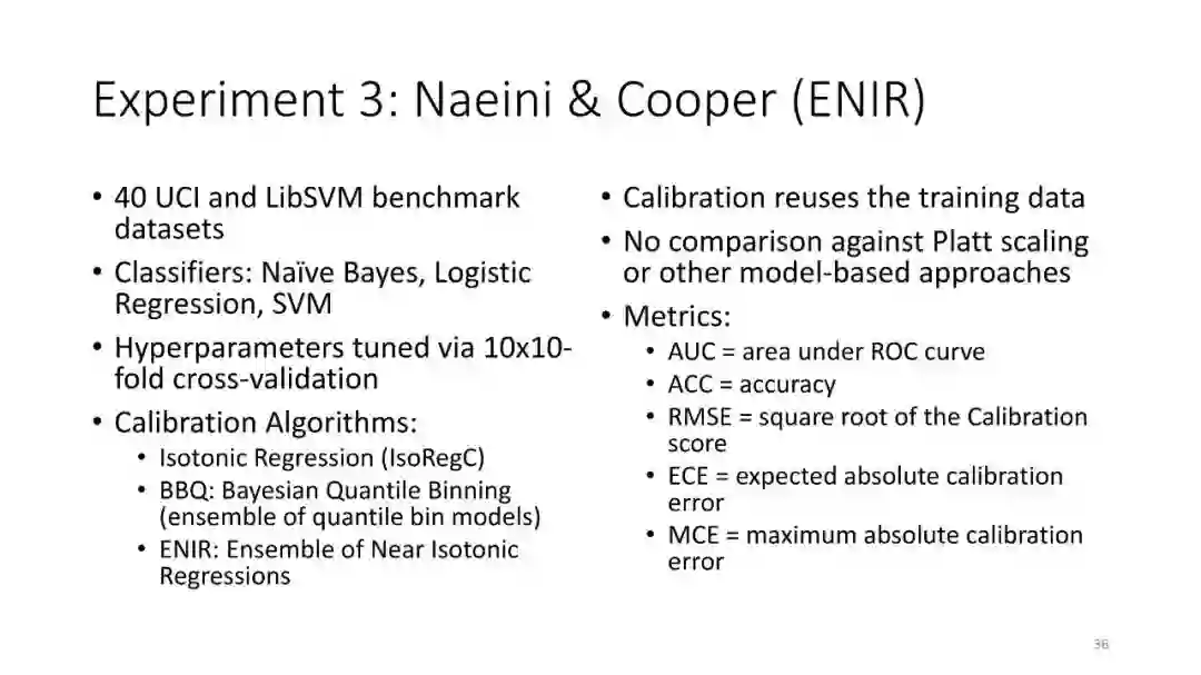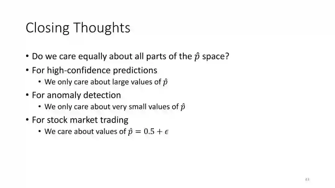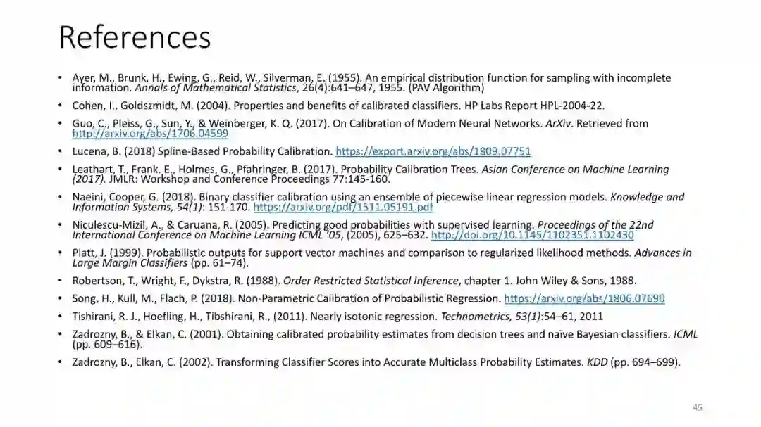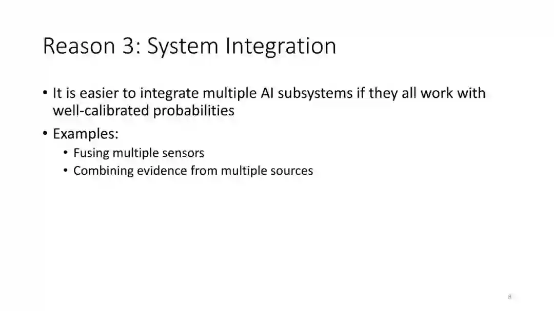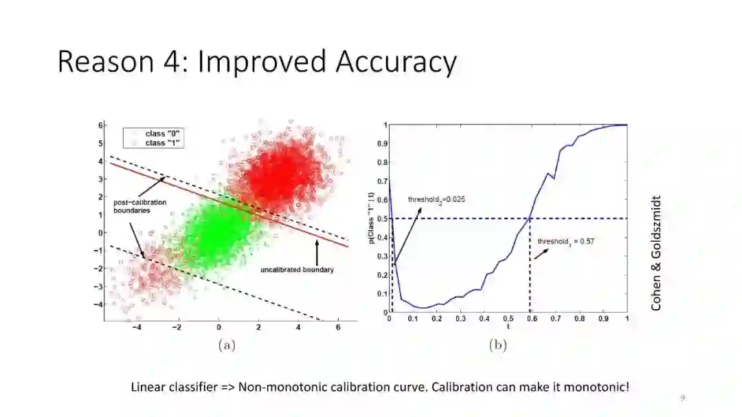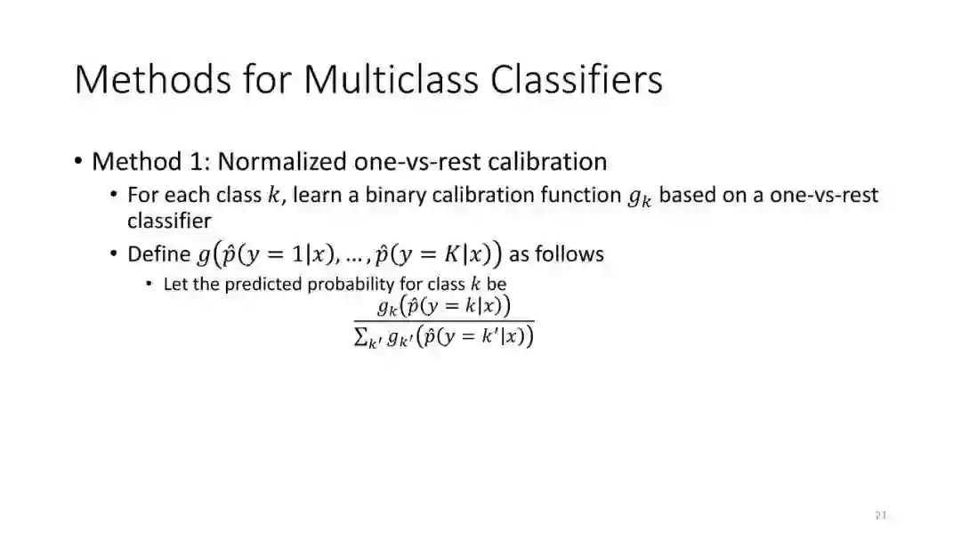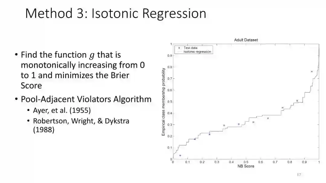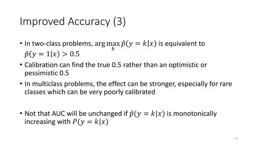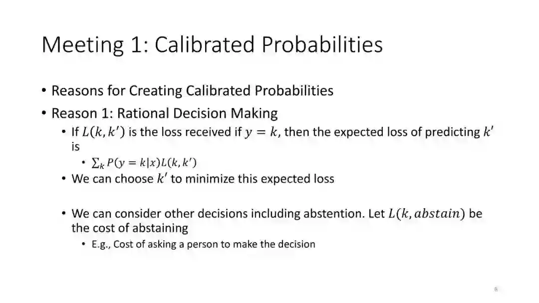 第1讲:校准概率。本节课讨论如何从监督分类器获得校准概率。这对于做出拒绝决定很有用,对于cost-sensitive的分类,处理类不平衡以及作为更大的AI系统的组件也是有用的。