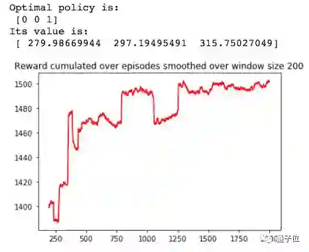 最优策略是等到森林处于古老且茂盛的状态时进行砍伐,这容易理解,因为在森林处于最古老的状态时砍伐的奖励是等待让森林生长的奖励的5倍,有r1=10,r2=50。