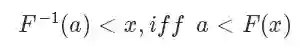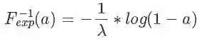 根据 F(x) 的定义,它是 exp 分布的概率累积函数,所以上面这个公式的意思是 符合 exp 分布,我们通过 F 的反函数将一个 0 到 1 均匀分布的随机数转换成了符合 exp 分布的随机数,注意,以上推导对于 cdf 可逆的分布都是一样的,对于 exp 来说,它的反函数的形式是:
