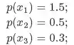 因为我们从 x 轴上是按均匀分布随机采样的,所以采样到三个点的概率都一样,也就是