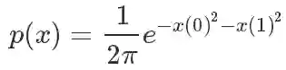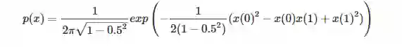 return 1/(2*PI*math.sqrt(1-0.25))*np.exp(-1/(2*(1-0.25))*(x[0]**2 -x[0]*x[1] + x[1]**2))