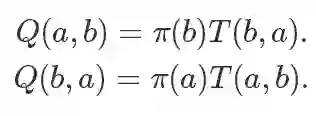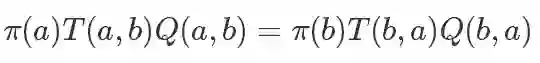 结论很清晰:这样一个转移概率函数T是满足细致平稳条件的,而且和Metropolis里面不同:它不是对称的。