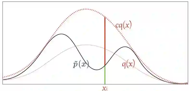 其中 c 是需要选择的一个常数。然后我们从 q 分布中随机采样一个样本 ,并以