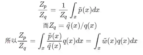 同时直接从 P 中 sample 也不可取的,而且计算 P是非常耗时的事情(因为需要计算Z),我们一般只能计算 ,而且直接从 P 中 sample 也不可取,所以我们选择另一个分布 Q 进行 Importance Sample 即可。