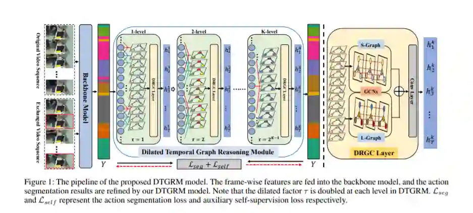 视频中的时间关系建模对于人类动作理解(例如行为识别和动作分割)至关重要。尽管图卷积网络(GCN)在许多任务的关系推理中显示出了令人鼓舞的优势,但在长视频序列上有效地应用图卷积网络仍然是一个挑战。主要原因是大量节点(即视频帧)使GCN难以捕获和建模视频中的时间关系。为了解决这个问题,在本文中,我们引入了一个有效的GCN模块,即膨胀时间图推理模块(DTGRM),该模块旨在对不同时间跨度的视频帧之间的时间关系和相关性进行建模。特别是,我们通过构造多级扩张的时间图来捕获和建模时间关系,其中节点表示视频中不同时刻的帧。此外,为了增强所提出模型的时间推理能力,提出了一种辅助的我监督任务,以鼓励膨胀的时间图推理模块找到并纠正视频中错误的时间关系。在三个具有挑战性的数据集上,我们的DTGRM模型优于最新的动作分割模型:50Salads,在GTEA和Breakfast数据集上。
