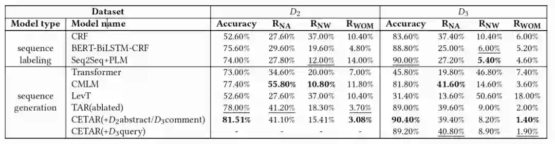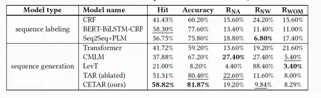 1. 在命中率和准确性方面,我们的 CETAR 在通用领域数据集(