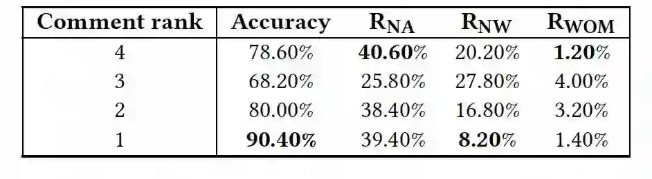 ▲ 表6: CETAR 针对数据集三中输入实体不同长度的文本(评论)预测结果