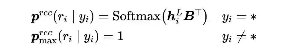 随着所有标记的隐藏状态,缩写分类器或恢复分类器判断序列中哪个 token 应该缩写或恢复。在第k轮解码过程中,缩写分类器首先判断序列中的每个 token 是否应该缩写。类似地,恢复分类器判断序列中每个特殊的缩略词*是应该保留还是恢复到相同位置的源 token。如下式所示,其中: