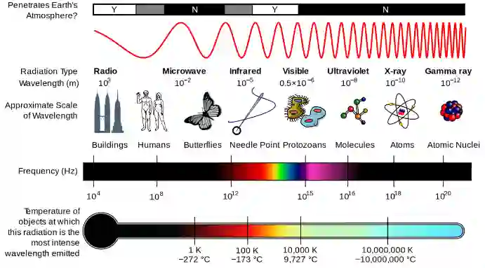 在上图中,你可以看到电磁频谱。虽然你通常只知道你与光(可见光部分)和红外(热)辐射的相互作用,但实际上还有更多的东西在不断地与你的身体相互作用。
