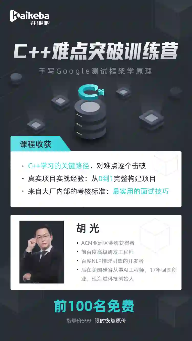 而且会重点带你经历,从GoogleTest实现原理到构建项目的全流程,让你能够从0到1独立开发一个C++项目,快速提升项目能力!