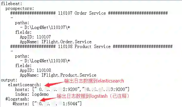 filebeat.yml 的配置示例如下图所示: