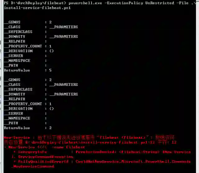 2、导向到 filebeat 执行程序所在目录,例如:cd 'E:\ELK\filebeat-1.3.0-windows',然后执行命令:powershell.exe -ExecutionPolicy UnRestricted -File .\install-service-filebeat.ps1。
