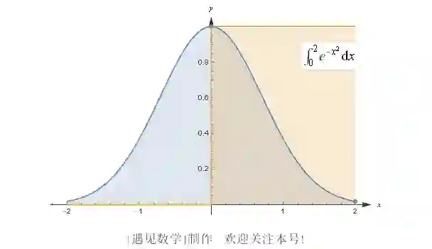它相当于由 x 轴、曲线 y = e^(-x²) 以及直线 x = 0 与 x = 2 所围成区域的面积, 如图 B-1 所示.