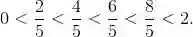 我们取 n = 5. 由于 [0, 2] 的长度为 2 单位, 从而每一条的宽度为