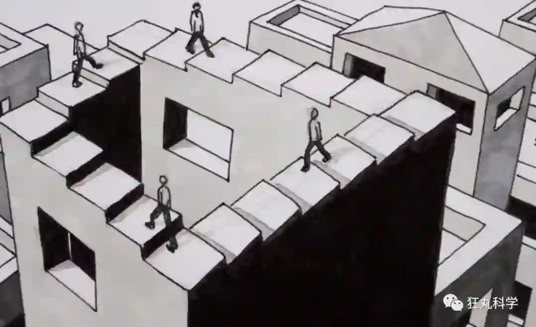 你可以跟着楼梯尝试移动一下眼神,就会发现在这段楼梯中永远找不到最高点和最低点,因为你脚下的台阶恰好就是通往更低处于更高处的方向...