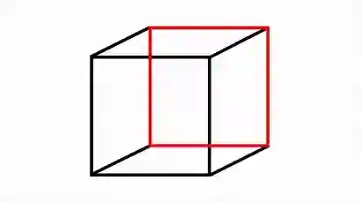 但内克尔立方体将透视时用到的虚线变为了实线,于是一个经典的视错觉图形就这样诞生了: