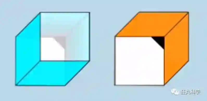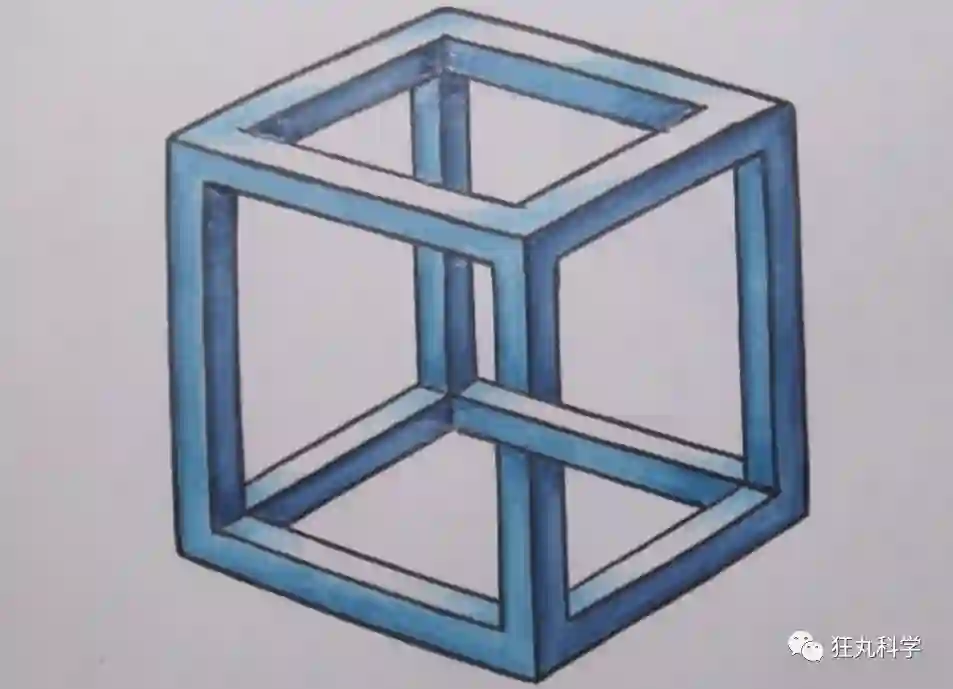 乍一看隐隐感觉有些不对,但又想不通问题出在哪?其实我们可以先来了解一下与它相似的知名视错觉构图,「内克尔立方体」。