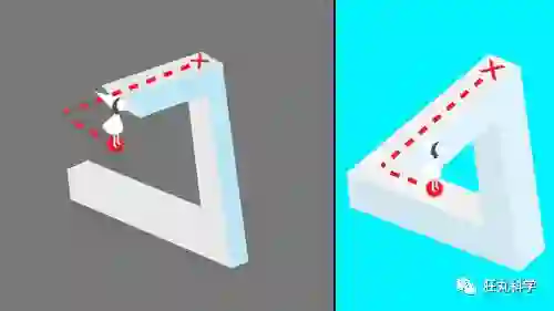 而谜题介于不可能与貌似合理之间,这就是「不可能图形」设计的有趣之处。