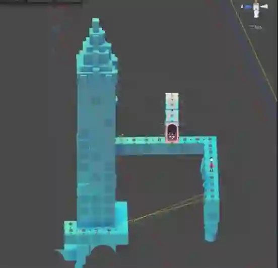 但这只是看上去而已,在现实世界并不可能真正的完成连接,主要是因为画面中标记的z轴所处的位置根本不同: