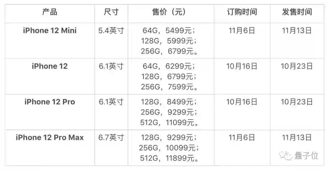 iPhone 12 Pro的发售时间为10月23日,Pro Max为11月13日。