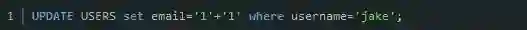从这个HTTP请求的格式和服务端点的名称应该不难推断出服务器需要执行的查询。很明显,这个服务端点的用途是更新用户的电邮,那必然会执行UPDATE查询。我们的目标就是找到既可证明SQL注入漏洞存在,又不会造成破坏的注入载荷,并用其进行测试。