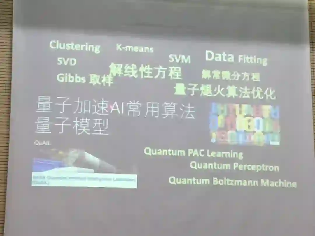 量子计算目前的有两个方向可以帮助提升AI,一个方向是用量子的算法来加速AI常用的计算,比如Gibbs取样、解线性方程等。