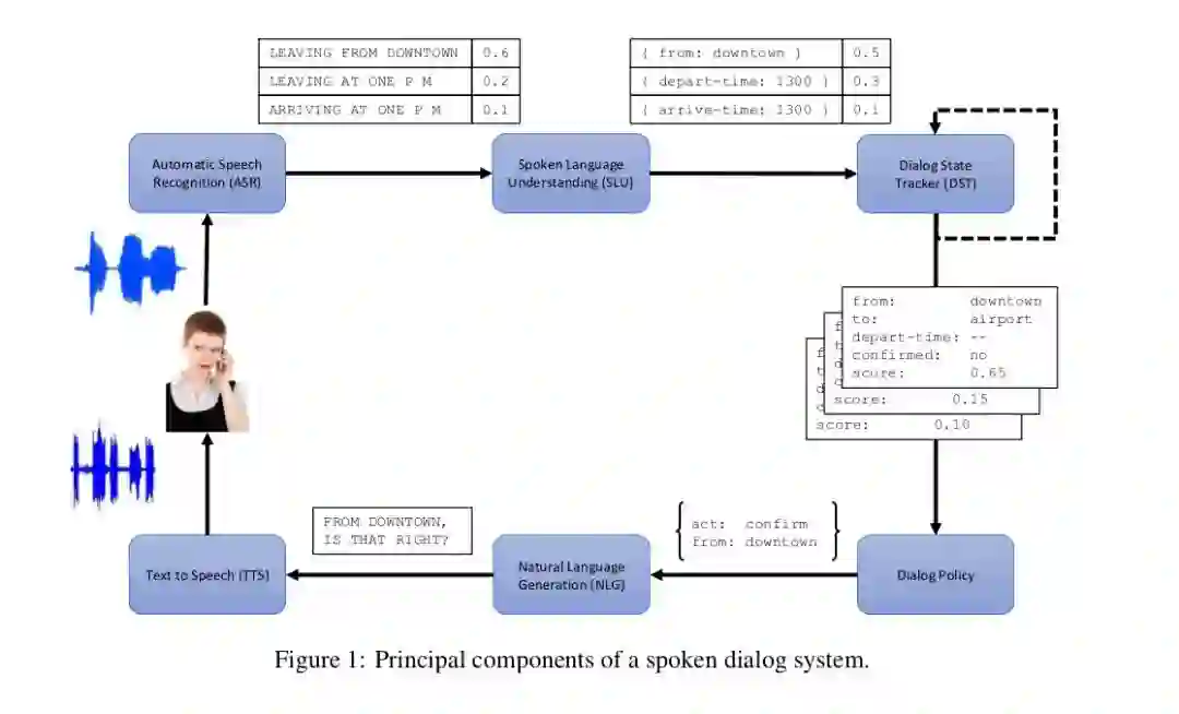 实际上很多关于对话系统的文章都没有仔细说这部分,这也是显而易见的,因为语音识别有更专门的领域专家去研究。绝大部分系统的假设都是能拿到比较准确的识别结果,至少是像上面那样的的结果列表,之后的工作。类似的,图中的TTS也是一般被忽略。