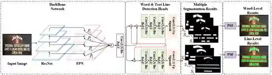 词检测和行检测是息息相关的。行检测器就像一个过滤器,可以将图片中的非文本区域过滤掉,在此基础上,词检测器只需要找到词语之间的间隙即可得到词检测结果。此外,词检测器可以为行检测器提供词语位置先验,在词检测器的帮助下,行检测器只需要将词语聚合成行即可得到行检测结果。