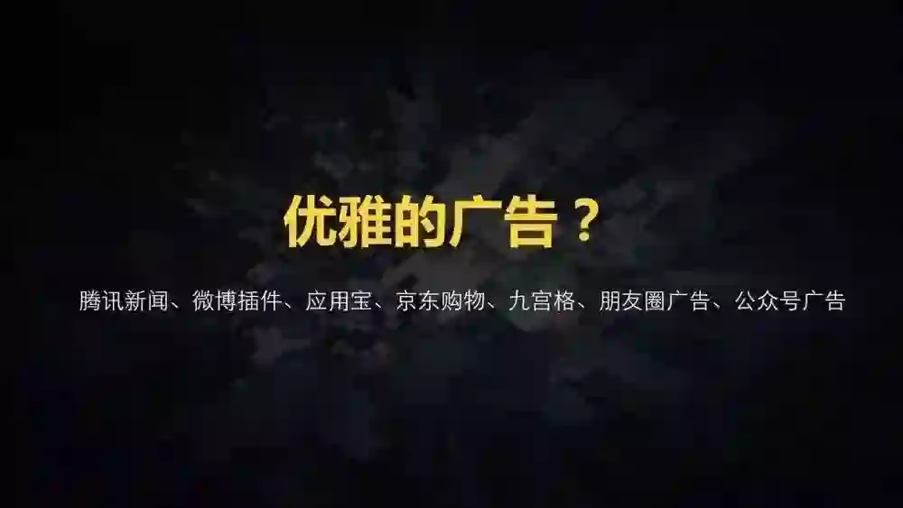 这些就是优雅的广告。腾讯新闻、腾讯微博的插件,这两个其实是公众号的前身,给两款产品导了大量的流量。