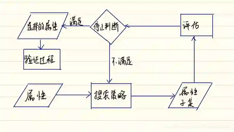 3.包装方法,算法作为黑盒,在确定模型和评价准则之后,对特征空间的不同子集做交叉验证,进而搜索最佳特征子集。深度学习具有自动化包装学习的特性。总之,特征子集选择是搜索所有可能的特性子集的过程,可以使用不同的搜索策略,但是搜索策略的效率要求比较高,并且应当找到最优或近似最优的特征子集。一般流程如下图: