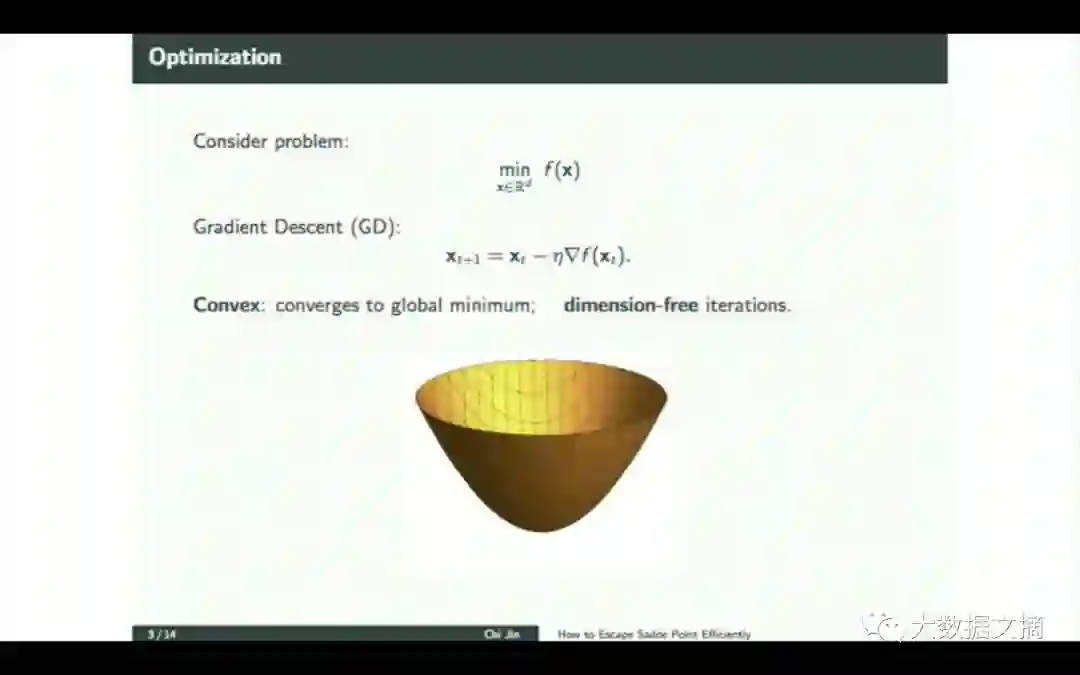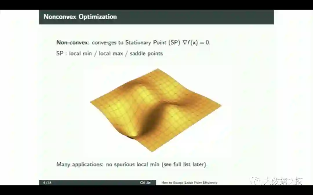 我们处在一个非常经验主义的人工智能和机器学习的时代,比我的职业生涯中的任何时刻都更重视经验。这很好,有很多新的探索,但是我们的理解理论远远落后。所以我在自己的研究中更多地关注这个问题。今天我想给大家讲一些研究结果。Chi Jin主导这项研究,他是我在伯克利的研究生,还有Ronge Ge,Praneeth Netrapalli,Sham Kakade几位学生参与了这个项目。