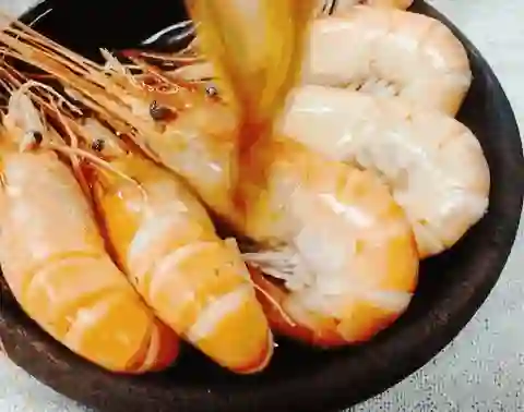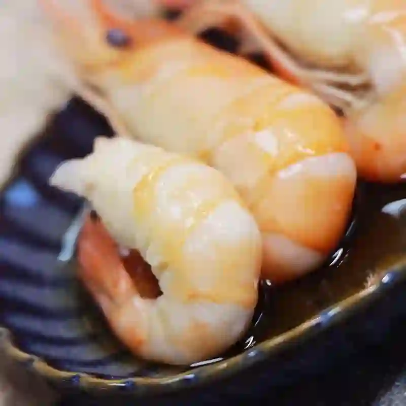 剥开虾壳就是饱满虾肉,锁满了美酒的芬芳,又带着虾肉特有的鲜甜,表面光滑到反光,诱人的橙红色下面就是玉白的虾肉!