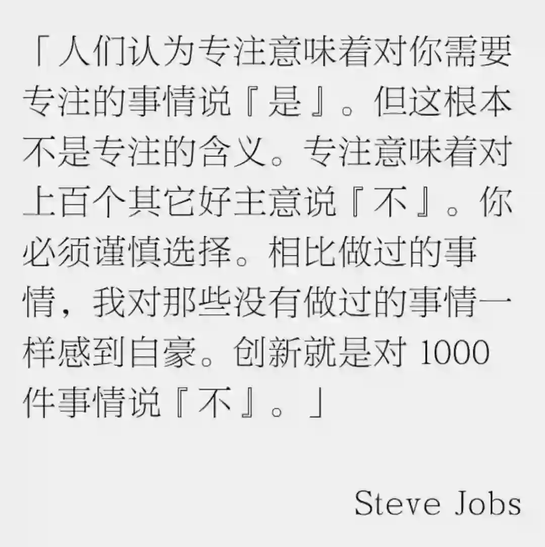 Steve Jobs 有段话说的非常好,创新是对 1000 件事情说「不」: