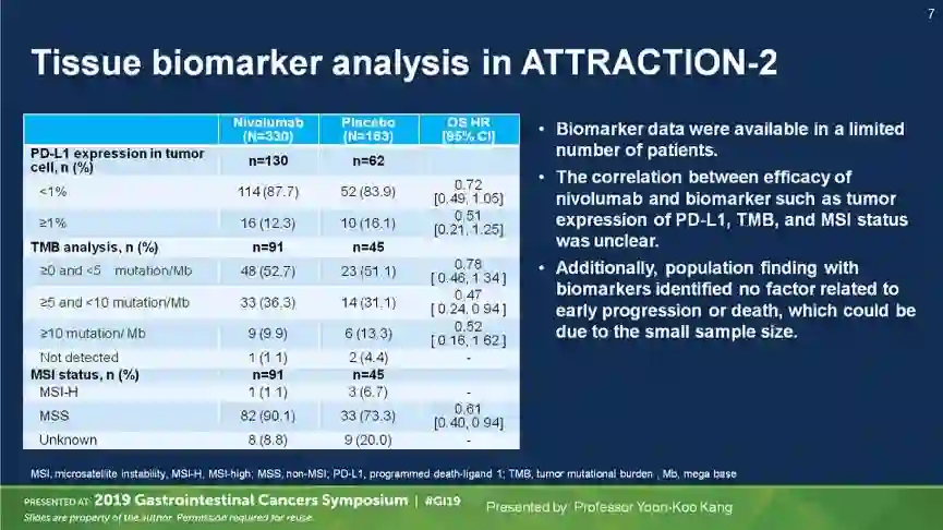 3.KANG Y K, SATOH T, CHAO Y, et al. Evaluation of efficacy of nivolumab by baseline factors from ATTRACTION-2[J]. J Clin Oncol, 2019 (suppl 4; abstr 8).