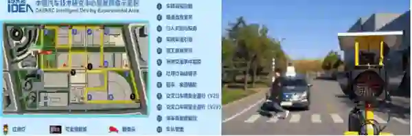 中汽中心智能网联示范区总长5km试点路段,共设置12个测试项目和7个障碍点,旨在打造符合国内车辆测试建设要求的智能网联无人驾驶示范区。