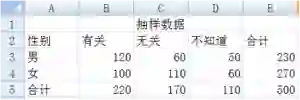 某机构欲了解现在性别与收入是否有关,他们随机抽样 500 人,询问对此的看法,结果分为“有关、无关、不好说“三种答案,图中为调查得到的数据: