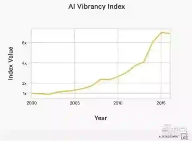 ▲AI活跃度指数(来自学术界和工业界数据,如出版物、注册创企和风险投资等)