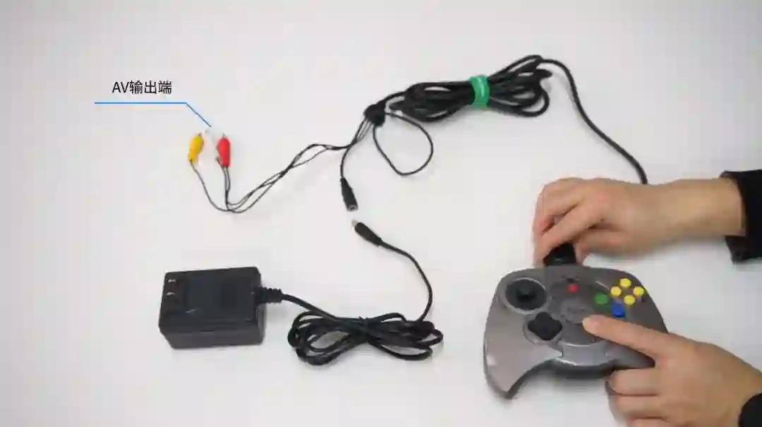 机器采用的是三色AV线输出,另一端直接与神游机相接。而电源则是通过控制线供给到神游机上,这种设计看起来实在有些奇怪。