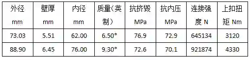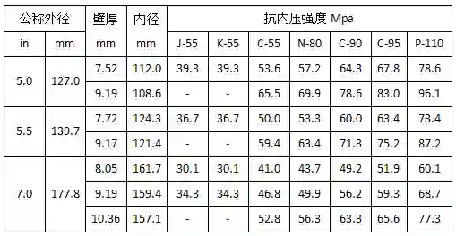 常用套管性能数据: