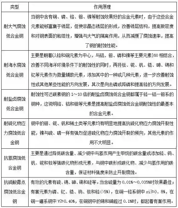 按其耐蚀性特点和使用领域可分为耐大气腐蚀低合金钢、耐海水腐蚀低合金钢、耐盐卤腐蚀低合金钢、耐硫化物应力腐蚀低合金钢、抗氢腐蚀低合金钢和抗硫酸露点腐蚀低合金钢。