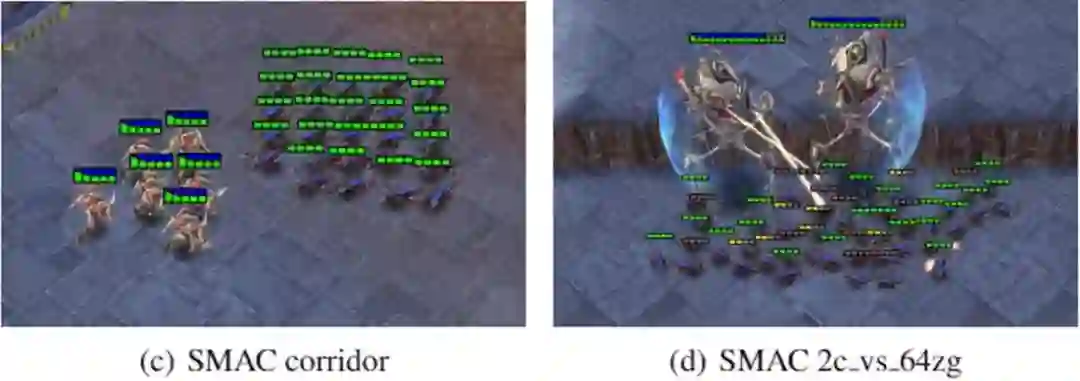 图 2:StarCraftII 环境中的 2 个代表性地图:Corridor 和 2c vs. 64zg