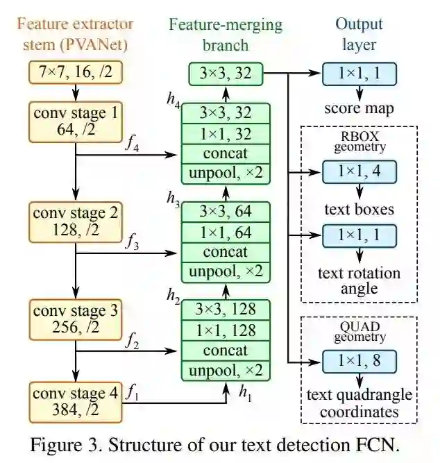 整体使用faster rcnn框架,考虑到某些文字框的宽高差距很大,在ROI pooling时 除了使用7x7的pooled size 还增加了3x11和11x3 两种pooled size。3x11可以更好地捕捉水平特征,这对于检测宽大于高的框比较有好处,而11x3可以更好地捕捉竖直特征,这对于检测高大于宽的框比较有好处。