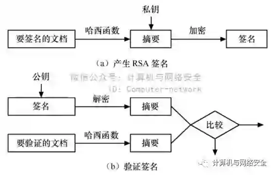 公钥加密算法提出后,通过利用单向哈西函数,就能够实现对文档进行数字签名。数字签名可以保障数据的源认证以及支持抗抵赖服务。使用公钥对中的私钥来进行数据流的加密,本身可以保证这一数据是由私钥的拥有者产生,但是为了建立这种保证,加密整个文档就显得太不合算了。幸而有另外的方法,可以不必加密整个文档就能建立这种保证。其中,两种有名的数字签名算法就是RSA和DSA算法。